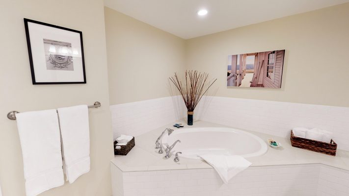 The spacious in-suite master bath is fitted with a platformed soaking tub, separate walk-in shower and dual vanities. Hair dryers, bathrobes and complimentary Gilchrist & Soames bathing soaps and lotions are provided.