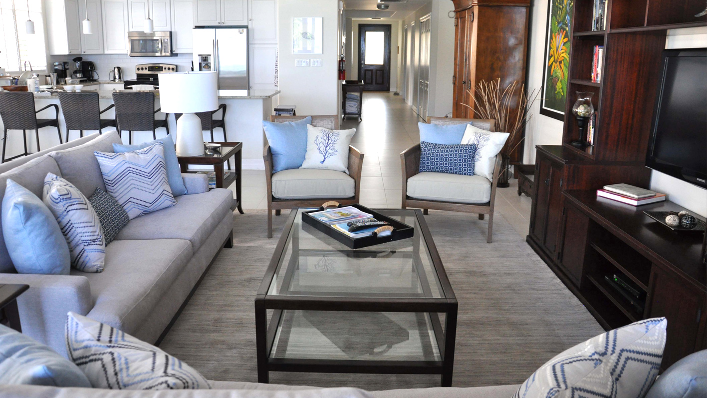 The dual A/C, Hunter ceiling fans and tiled floors throughout, keep this villa cool and comfortable. Large flat-screen TVs/DVDs are located in the living room and each bedroom. Cable entertainment channels and 40 music channels are available to choose from.
