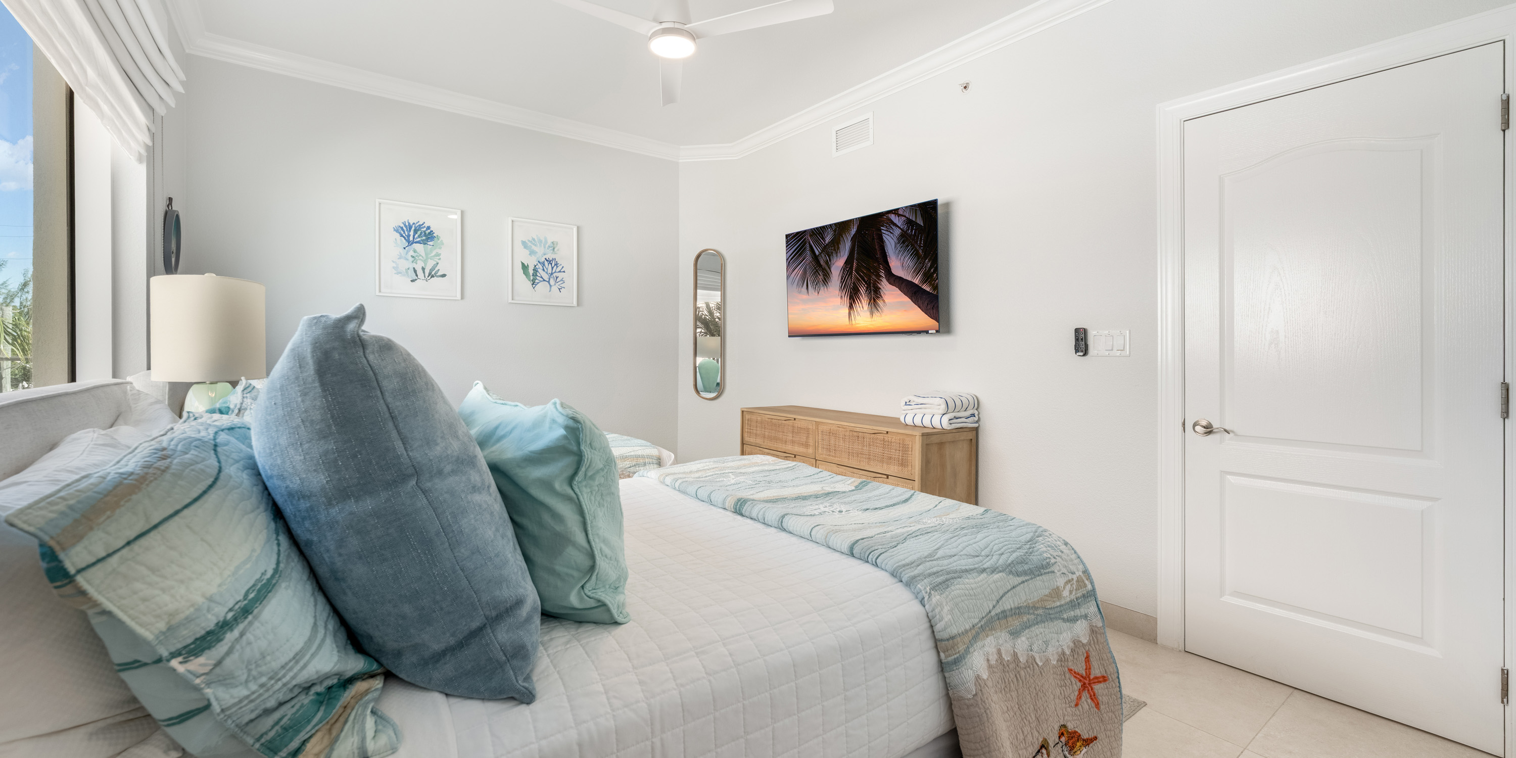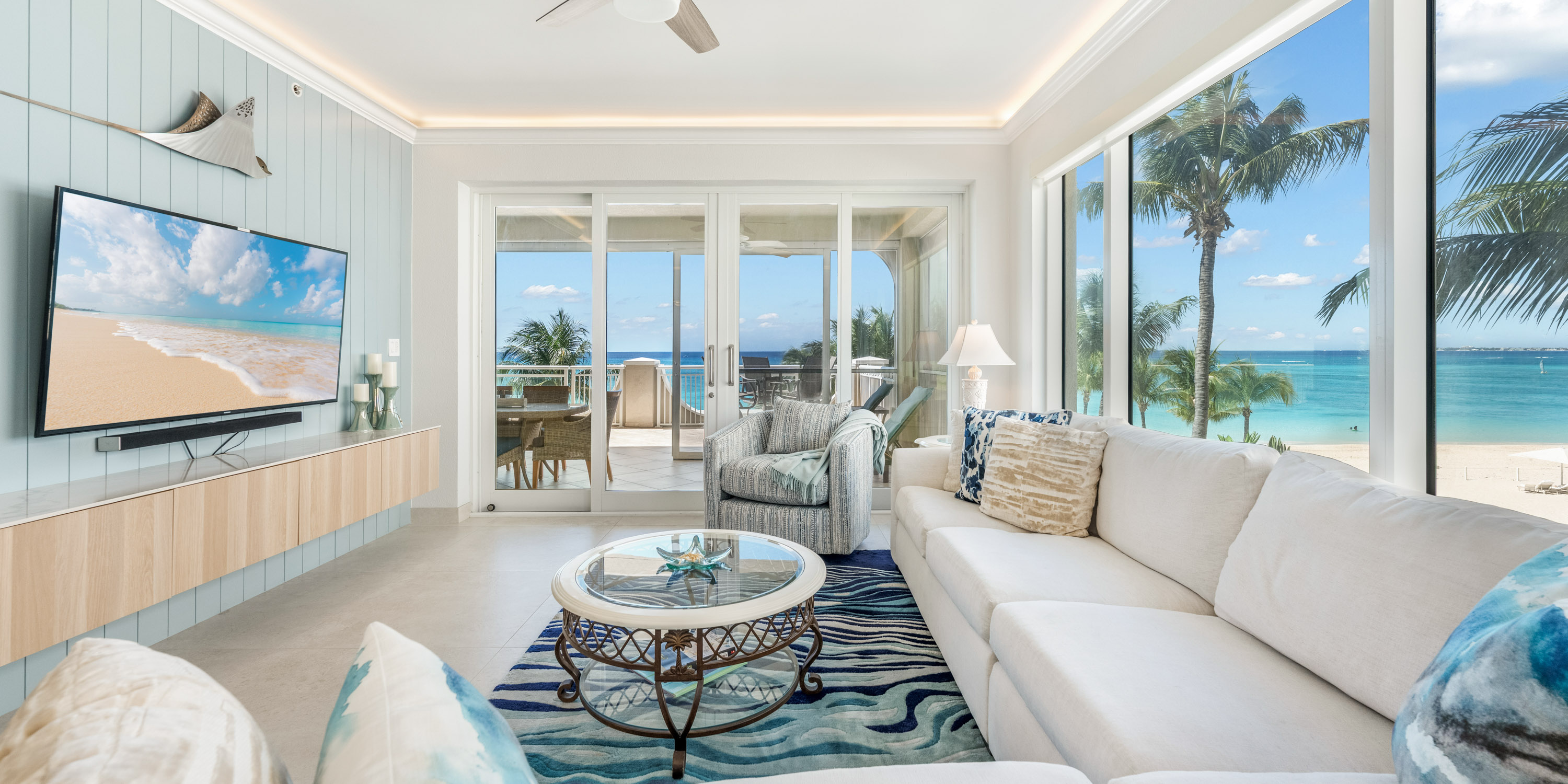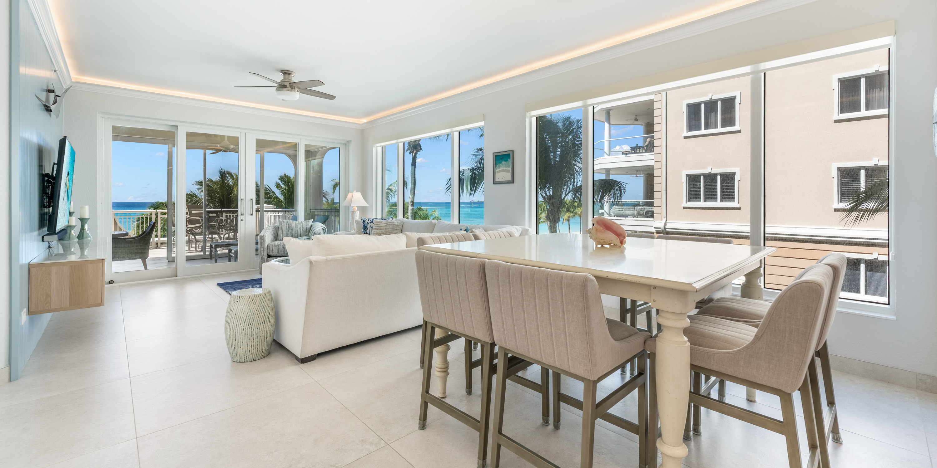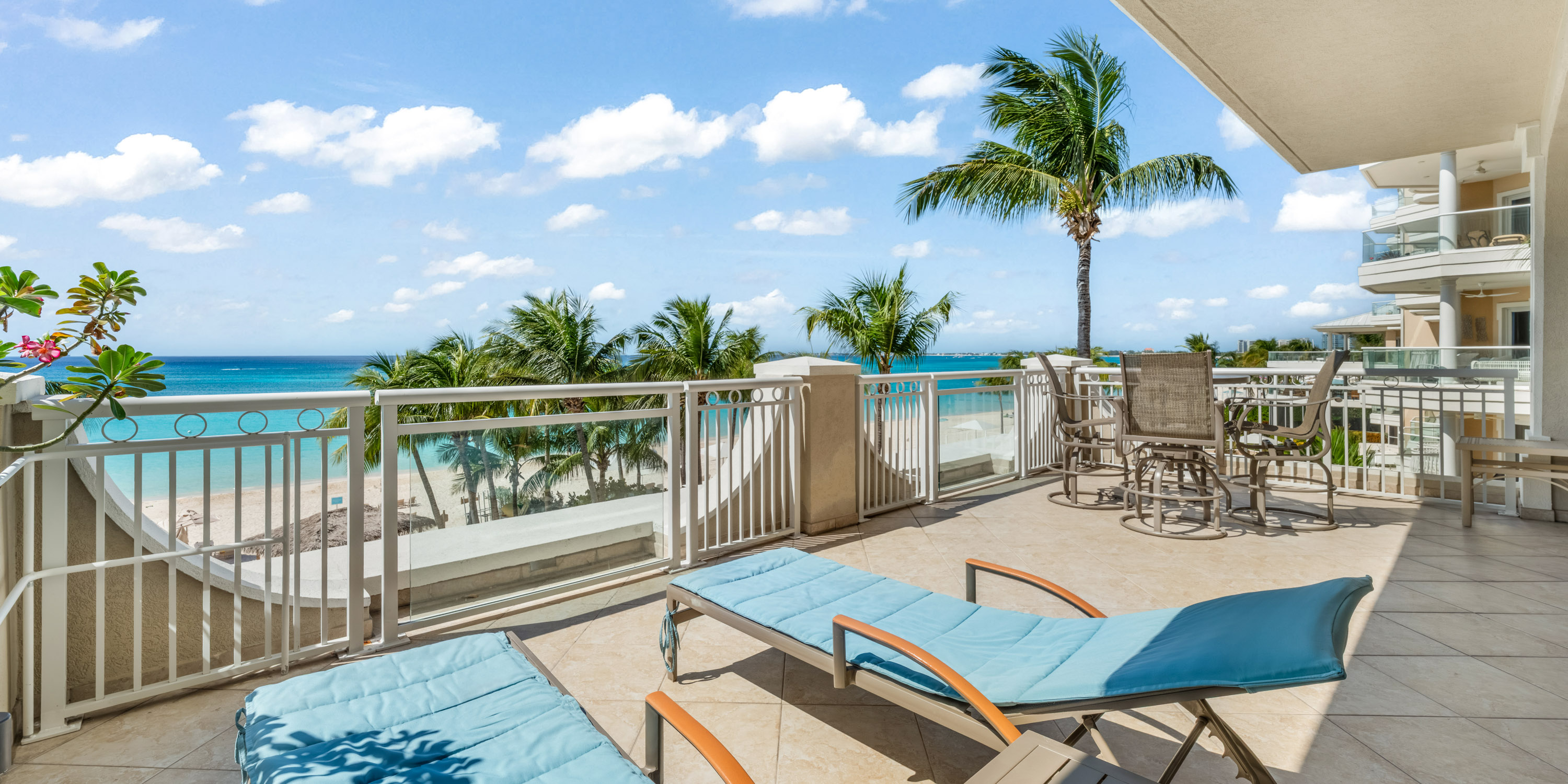 Tiled floors, central air conditioning, and ceiling fans keep the interiors cool and comfortable. The oversized balconies on the third floor provide breathtaking views of Seven Mile Beach. This unit faces North and has unobstructed views of the beach and sunsets.