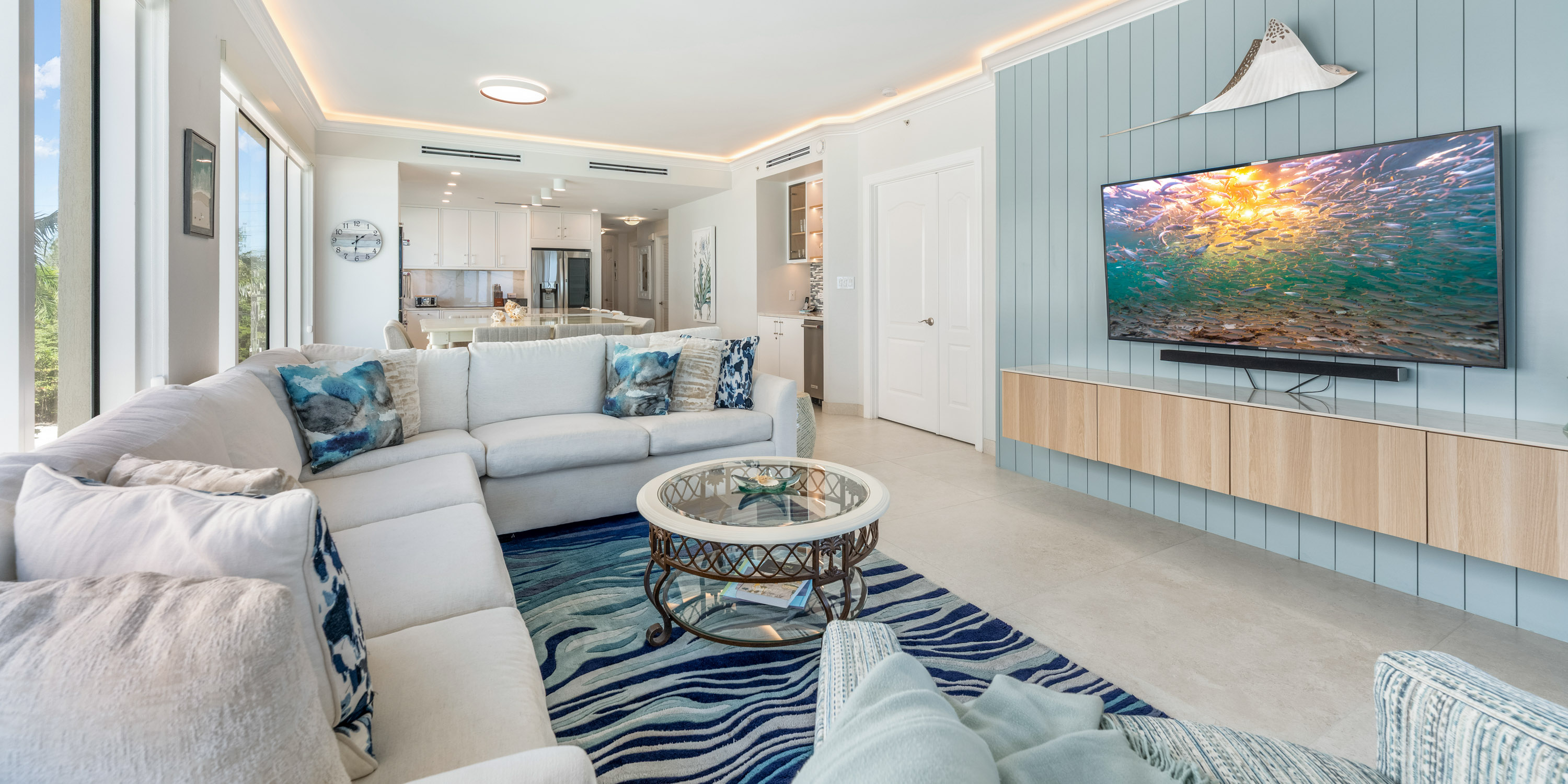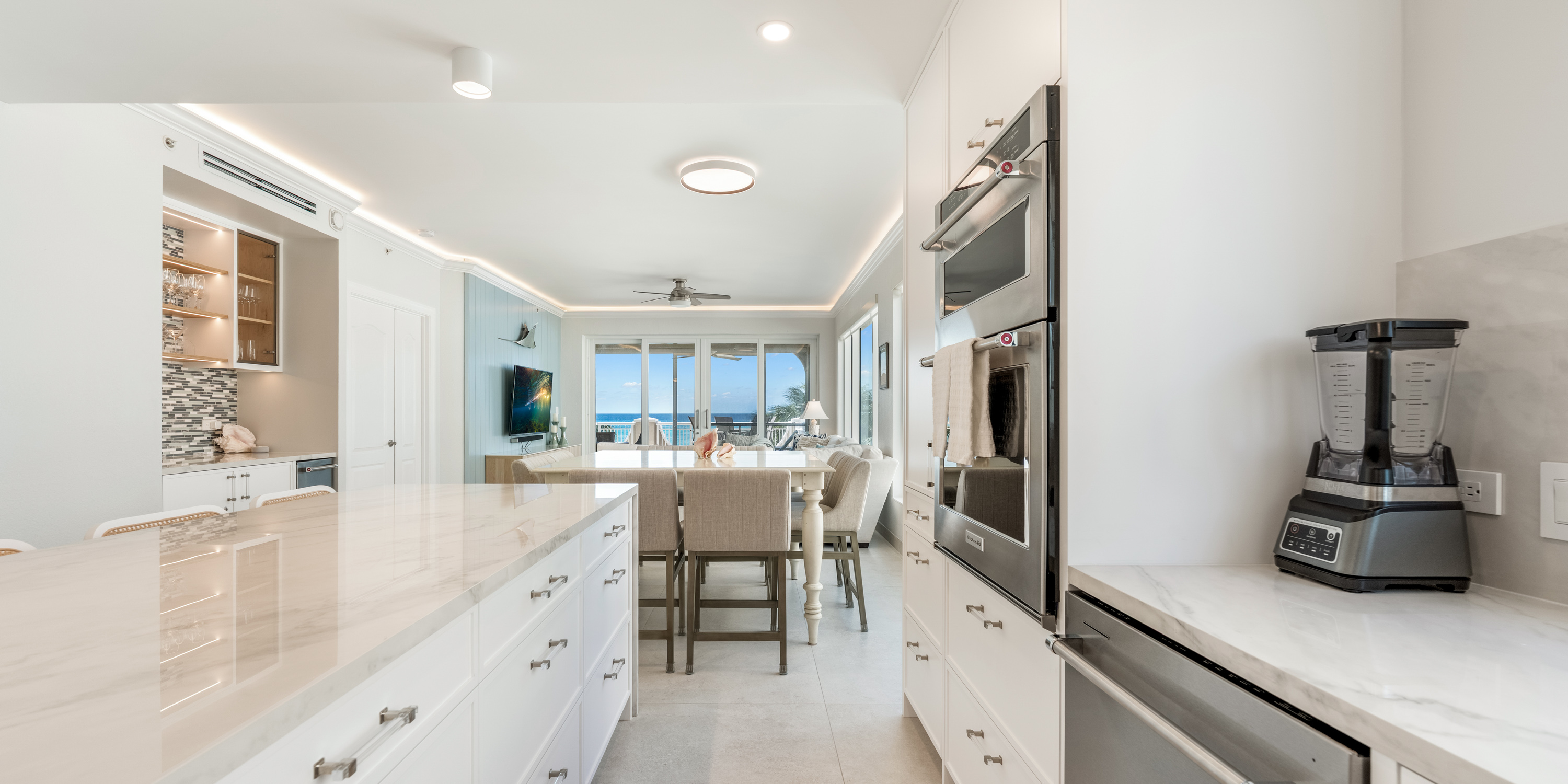 This luxurious third-floor corner unit offers sweeping views from the living areas, kitchen, and primary suite. Large windows, wraparound views, and high ceilings throughout, make this villa open and filled with natural sunlight.