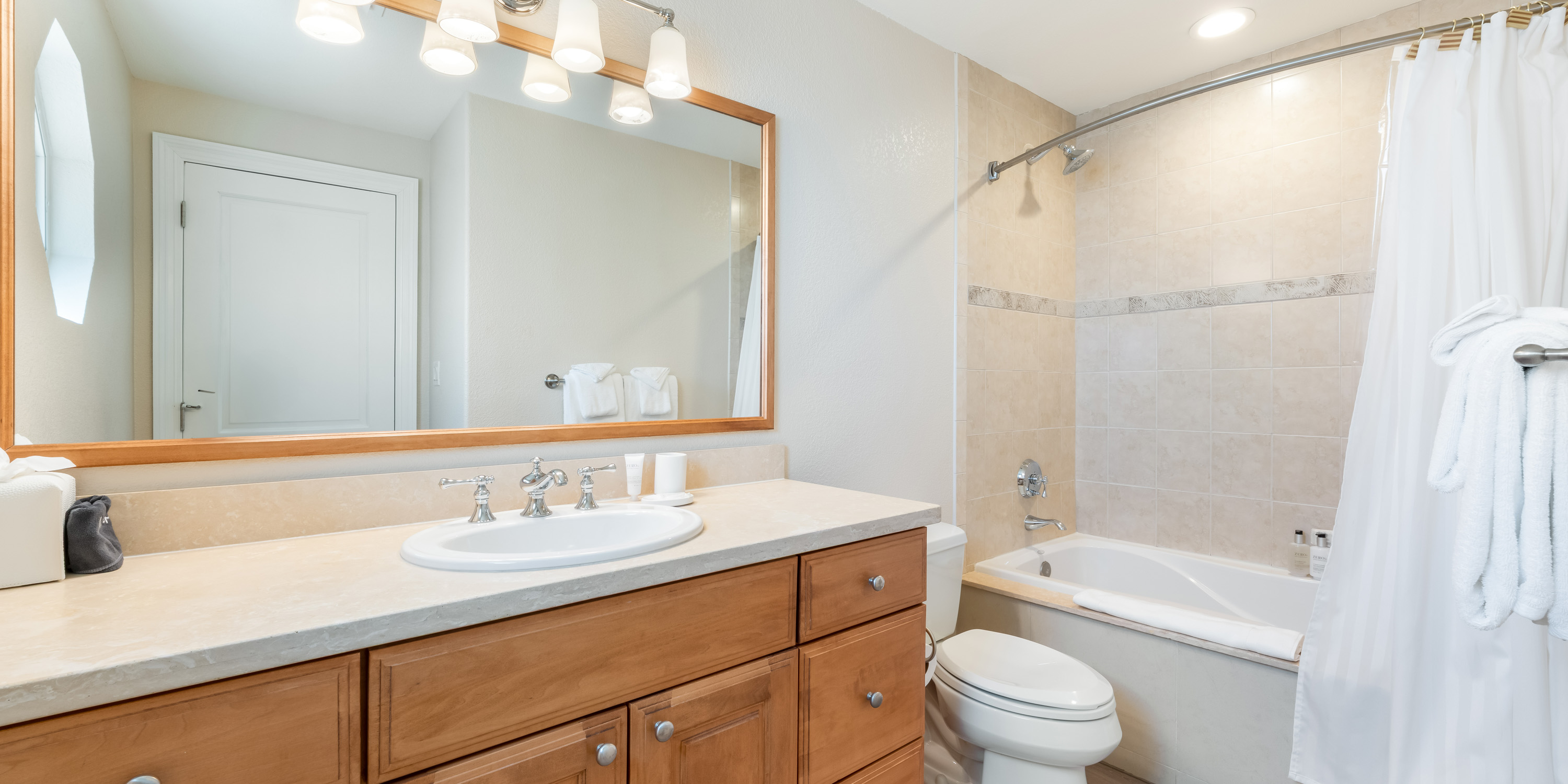 Small appliances are provided making at-home meals a breeze to prepare! High-speed blender, toaster, 10-cup coffee maker, plus a single-serve coffeemaker. Dishwasher detergent and dish soap are provided along with dishcloths and cleaning supplies.