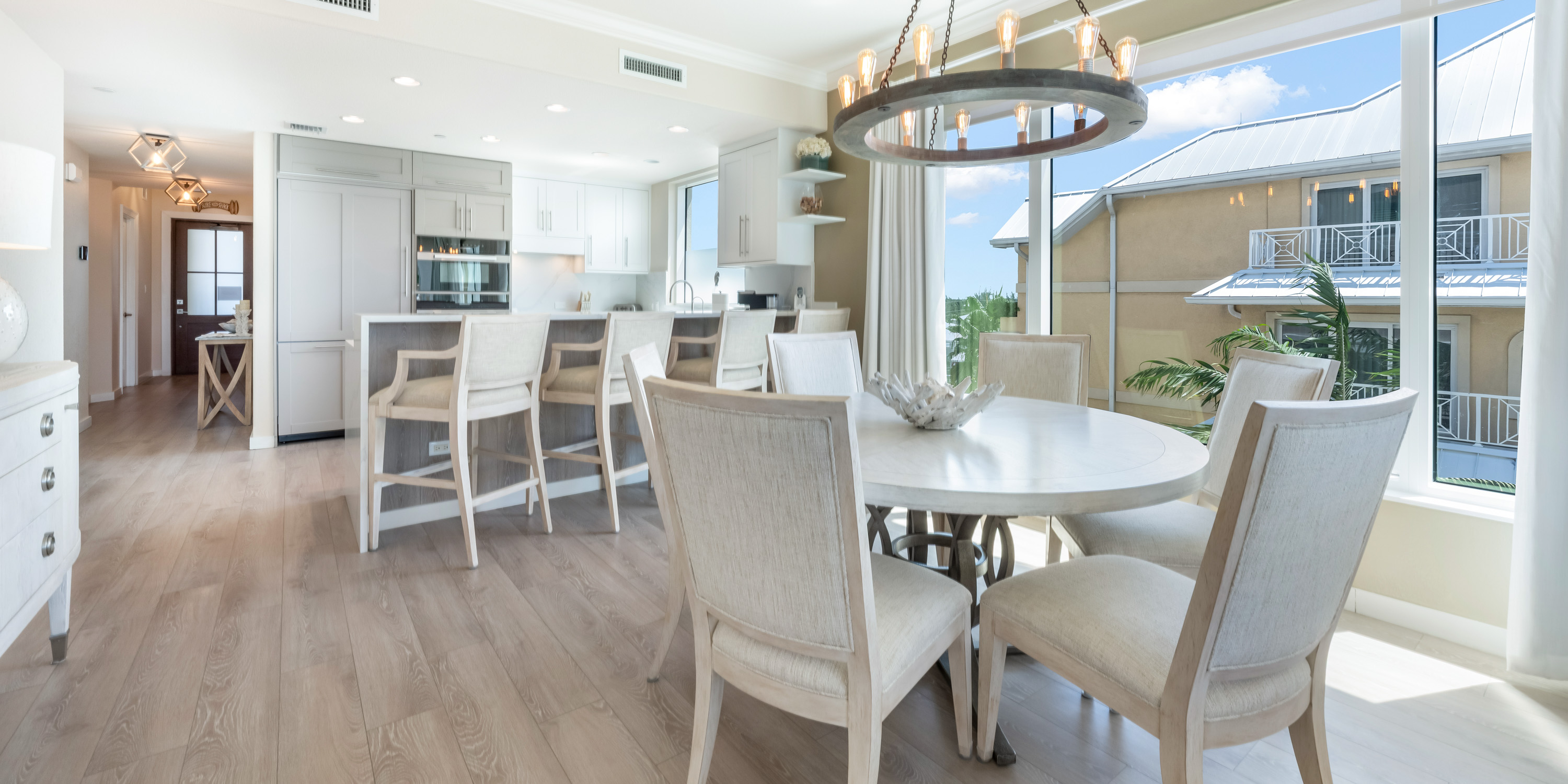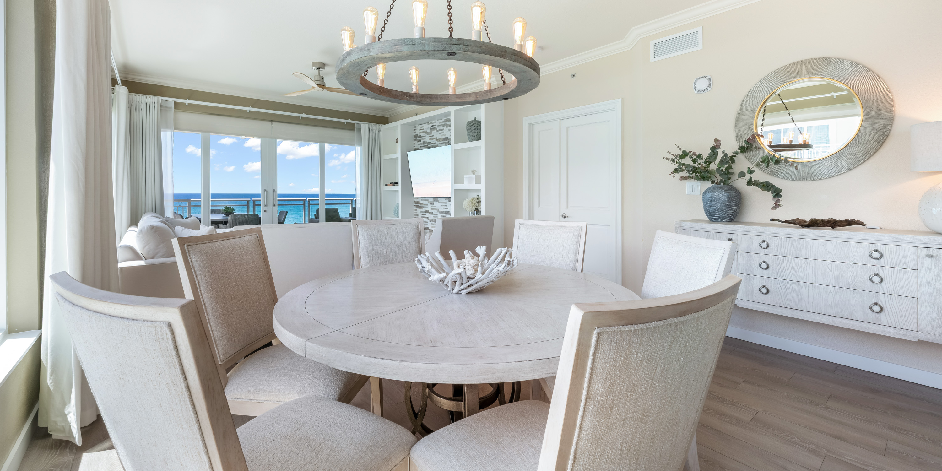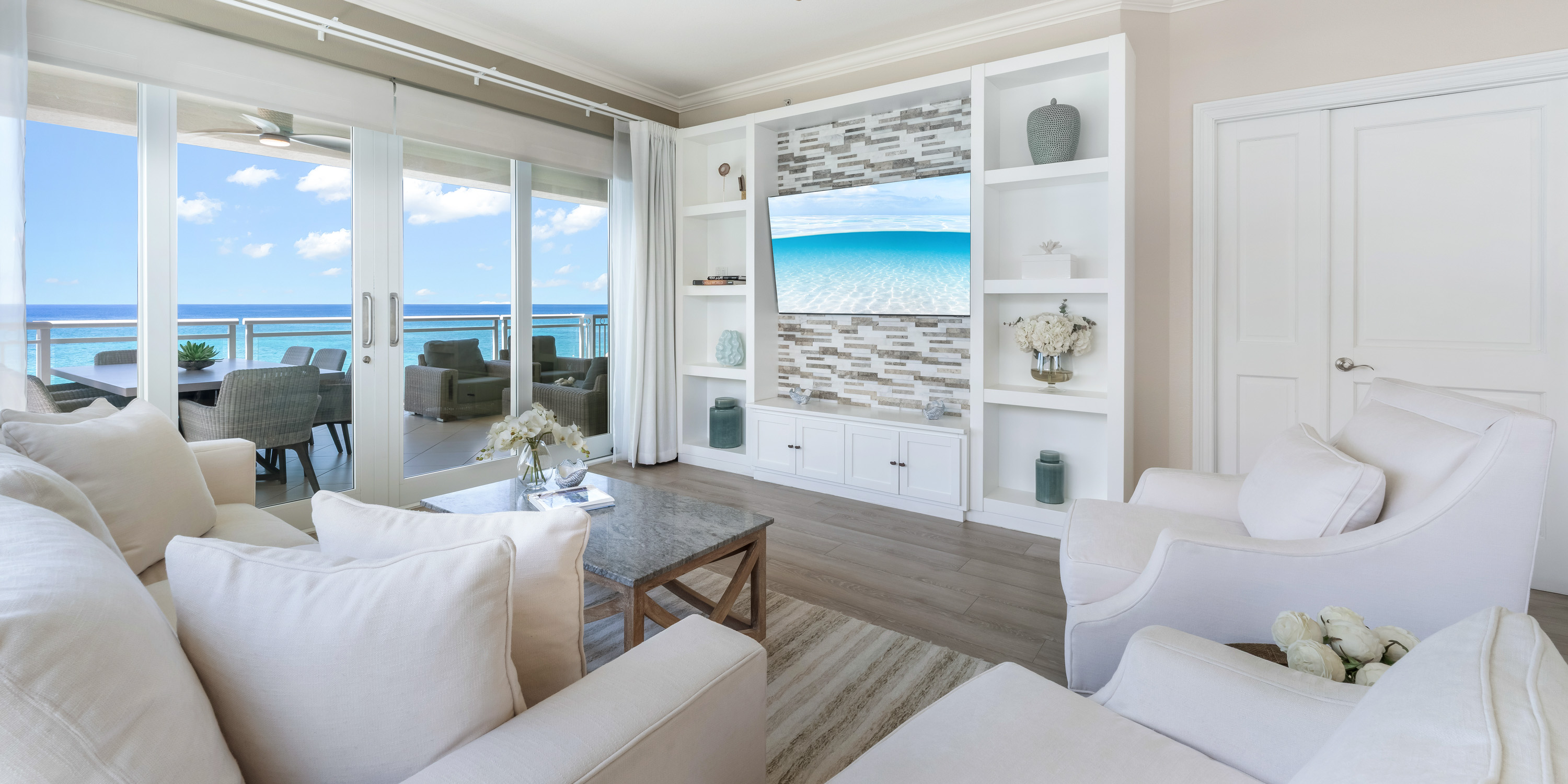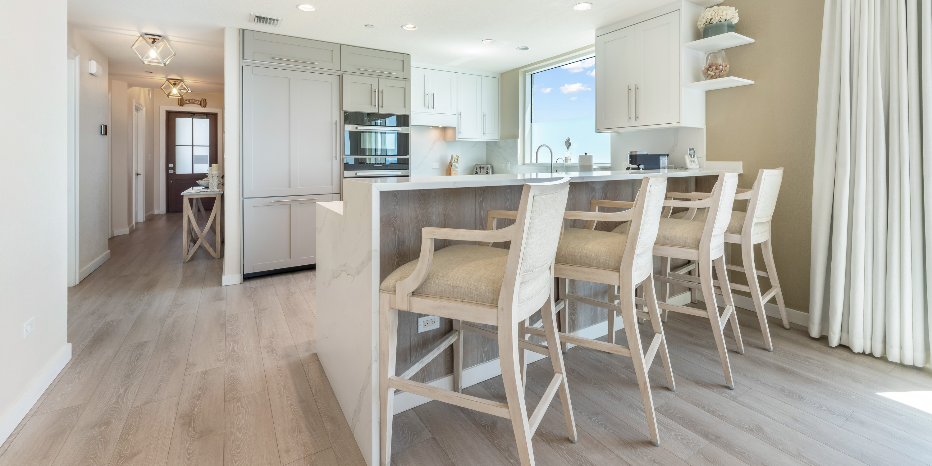 This luxurious 3-bedroom, 3-bath condo is located on the outside corner of the fifth floor. The large side-facing windows of this light-filled condo provide sweeping views of the sea and beach.