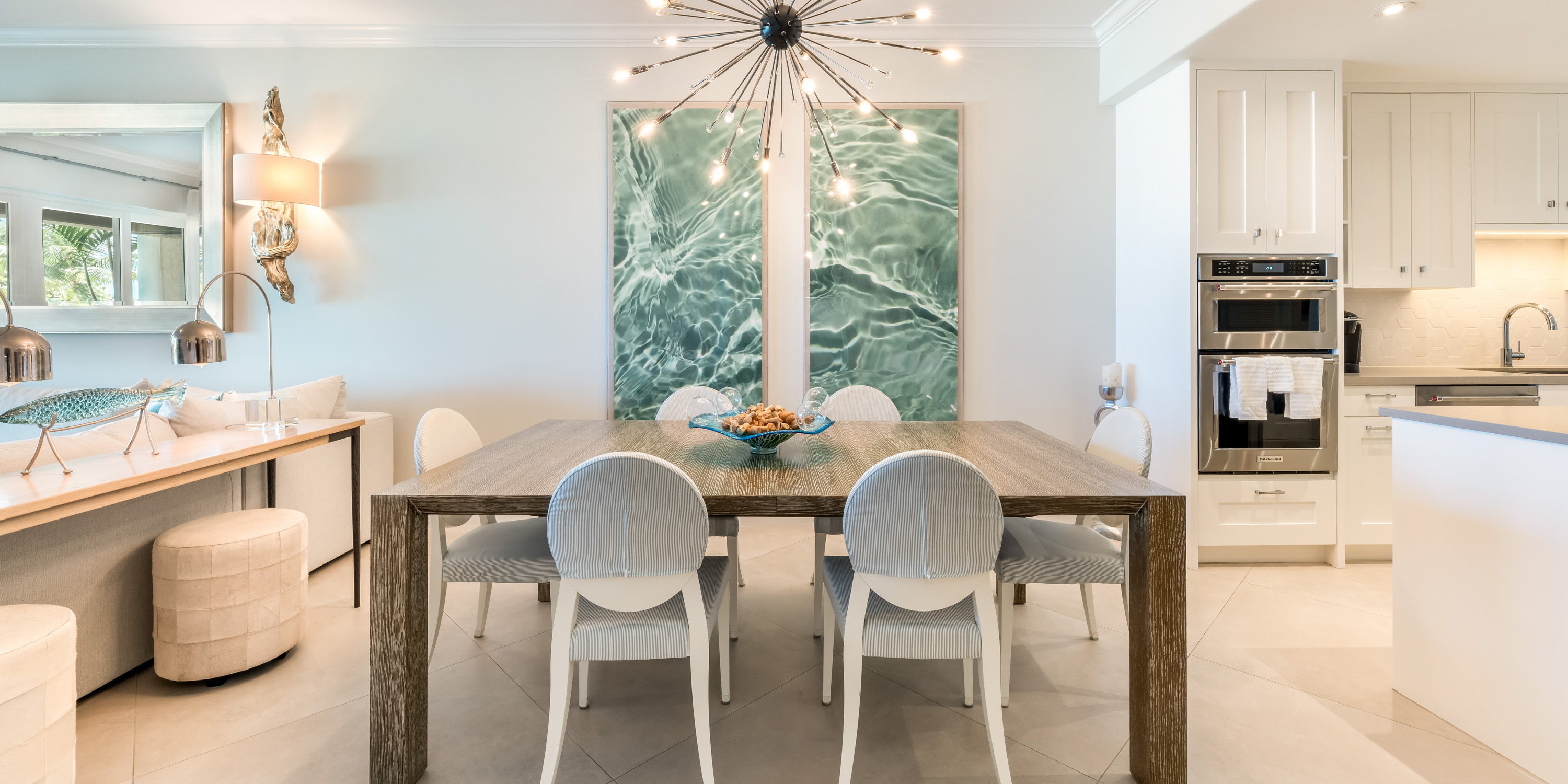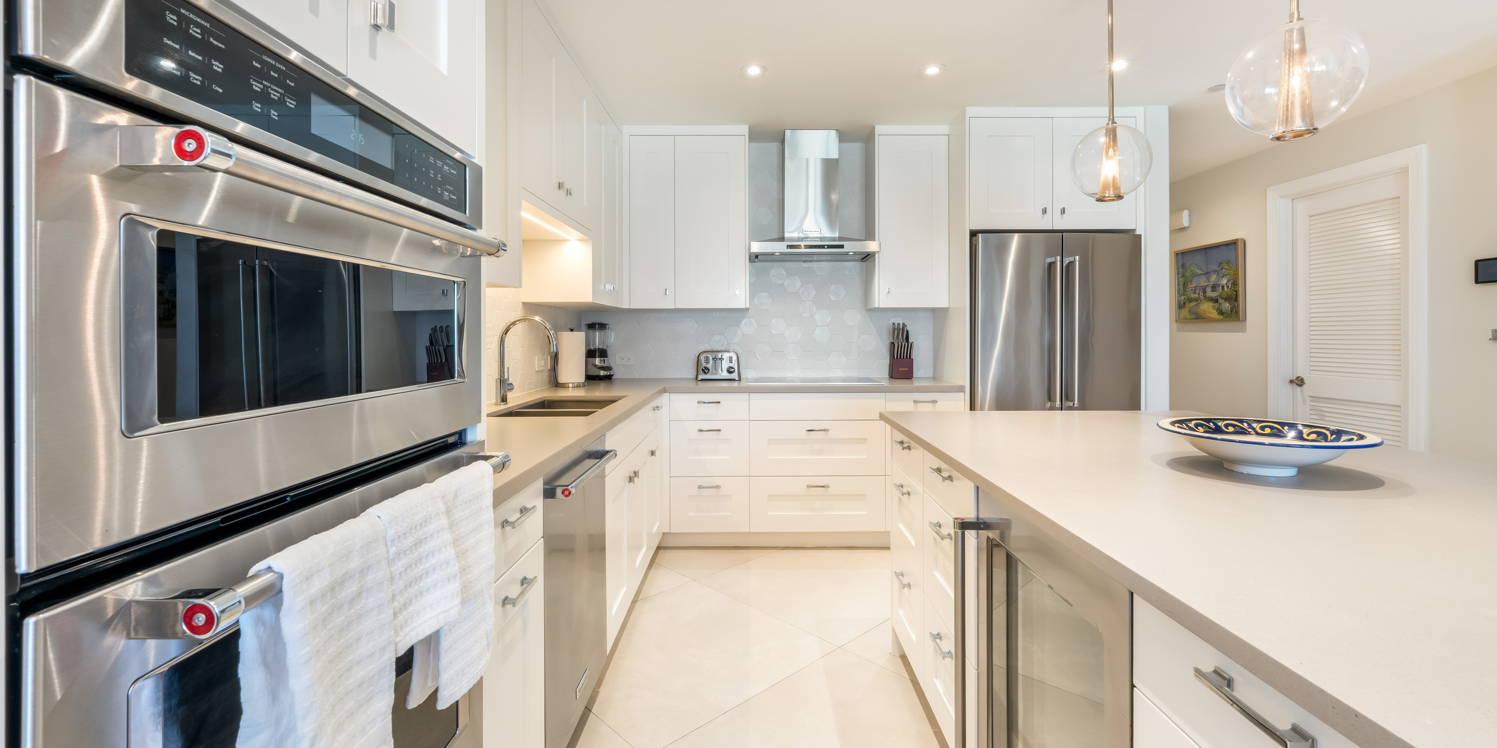 This designer-decorated home features a well-equipped gourmet kitchen with a separate ice machine under the counter in addition to the ice and water dispenser in the refrigerator.