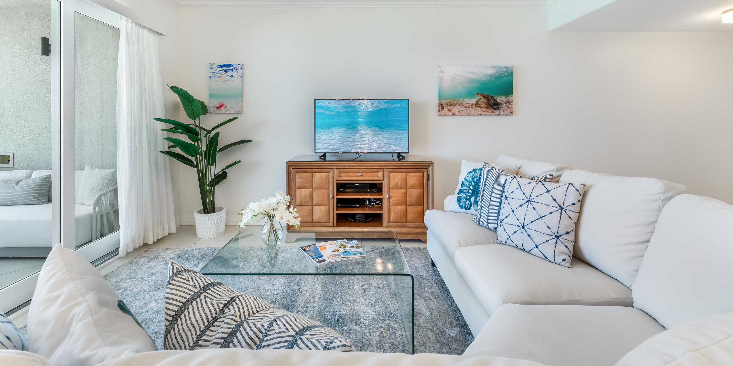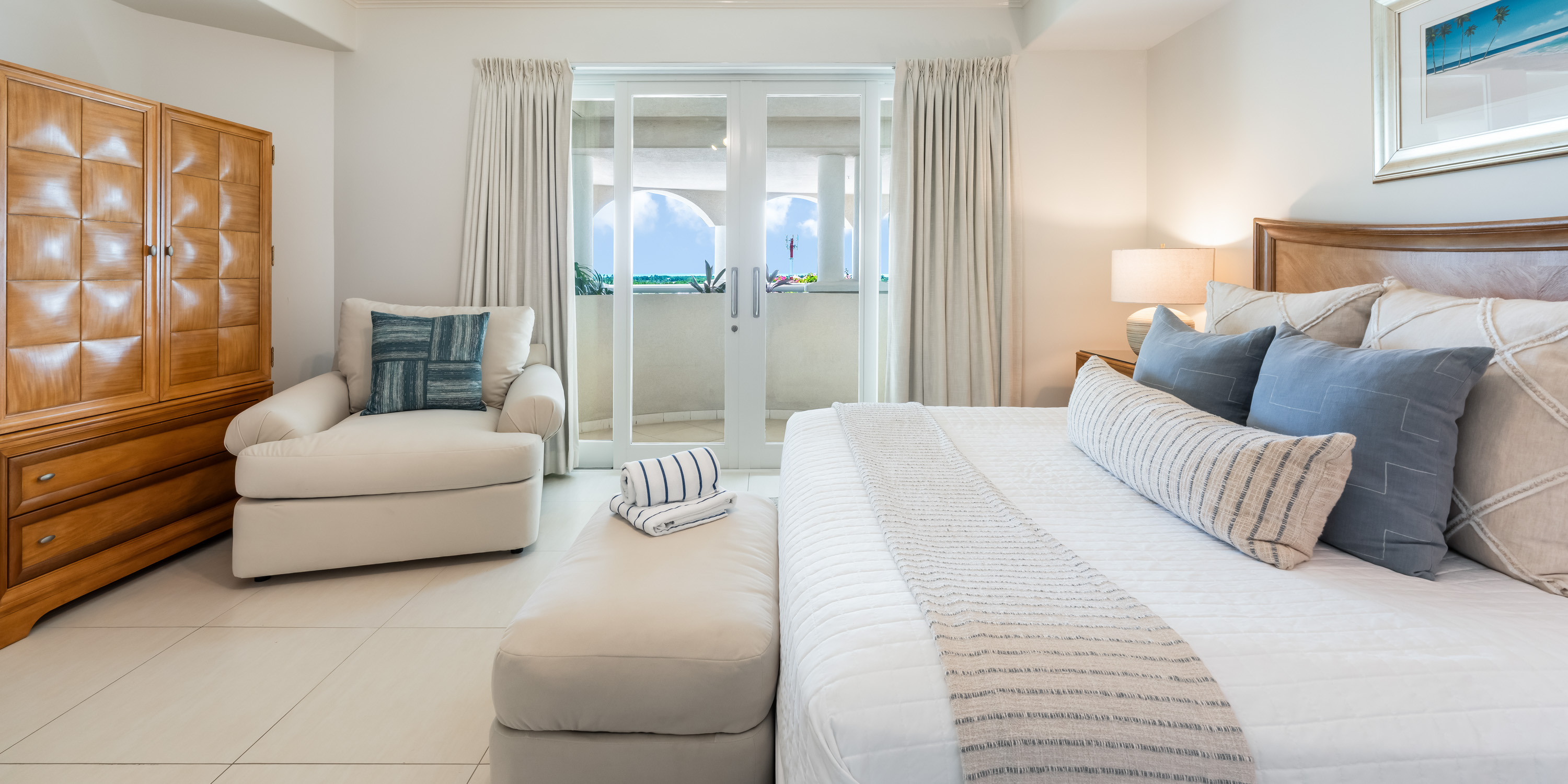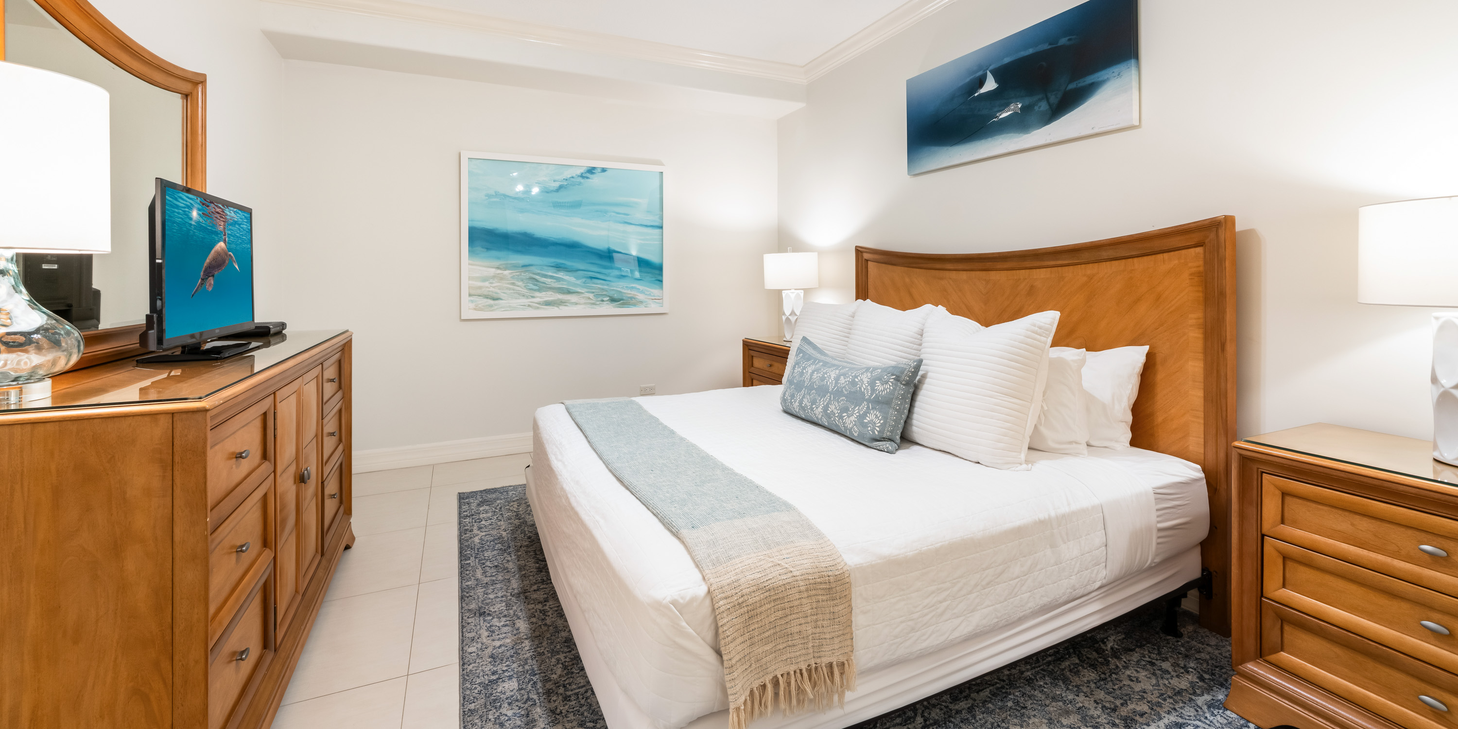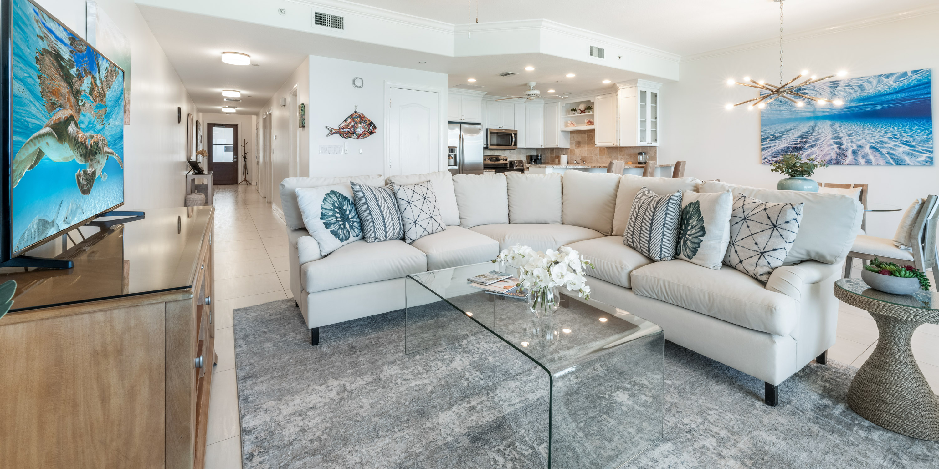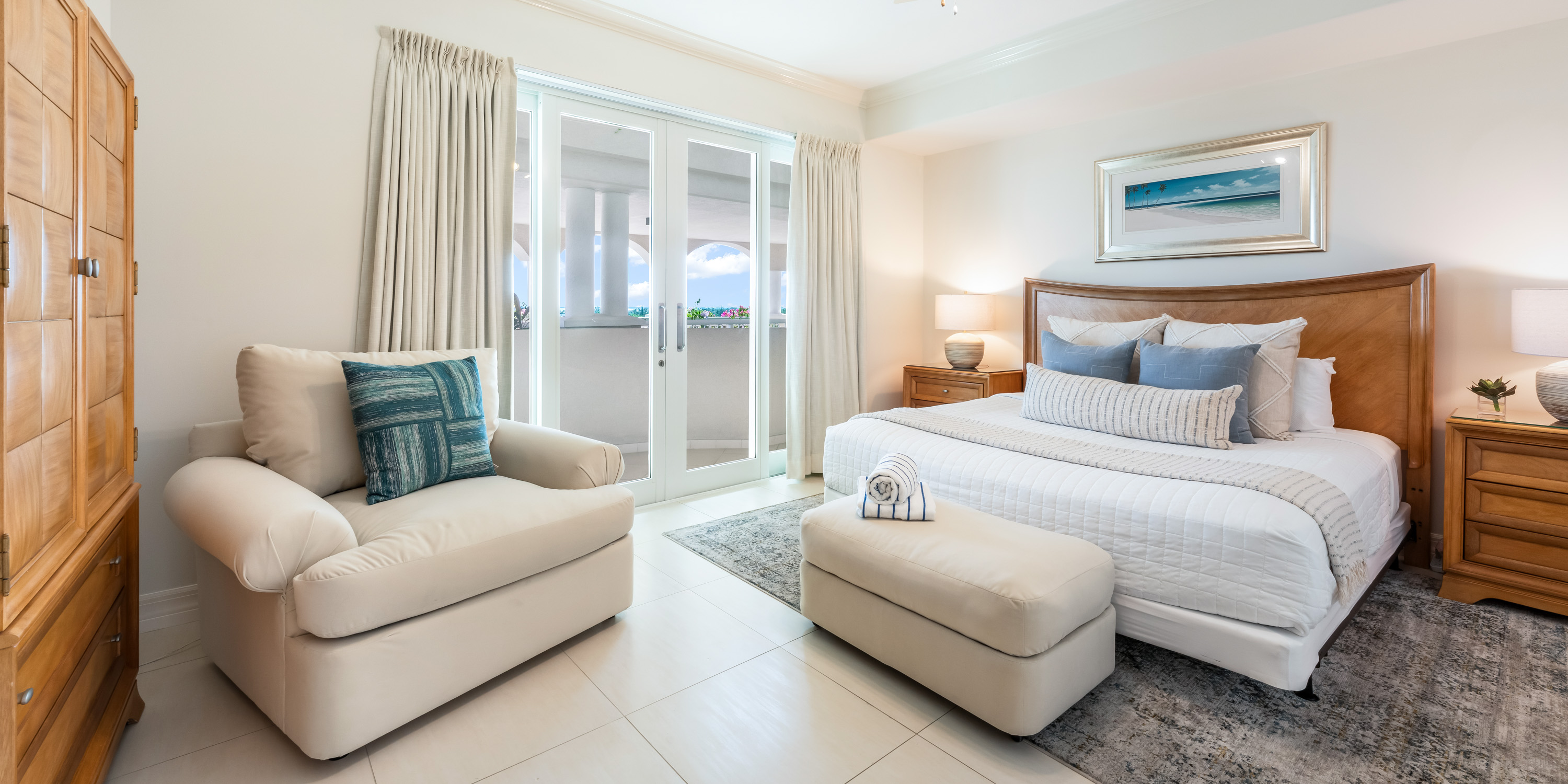 This 1,800 sq. ft. designer-decorated villa offers breathtaking views of Seven Mile Beach and the turquoise Caribbean Sea.