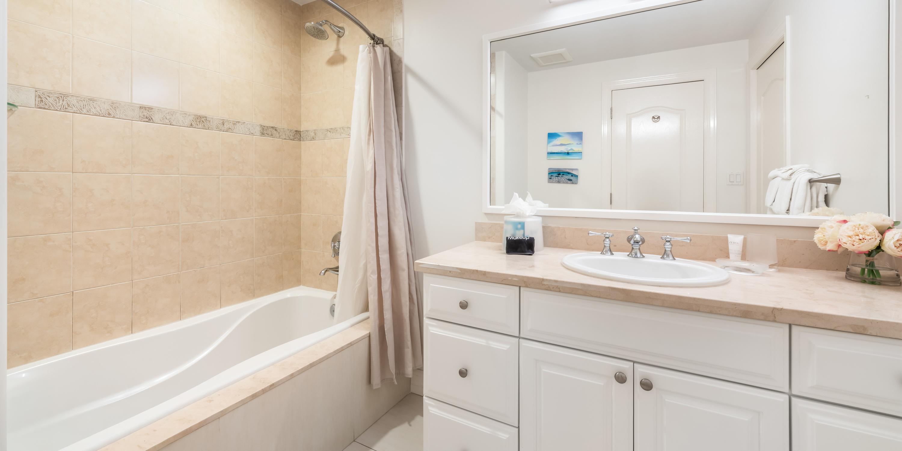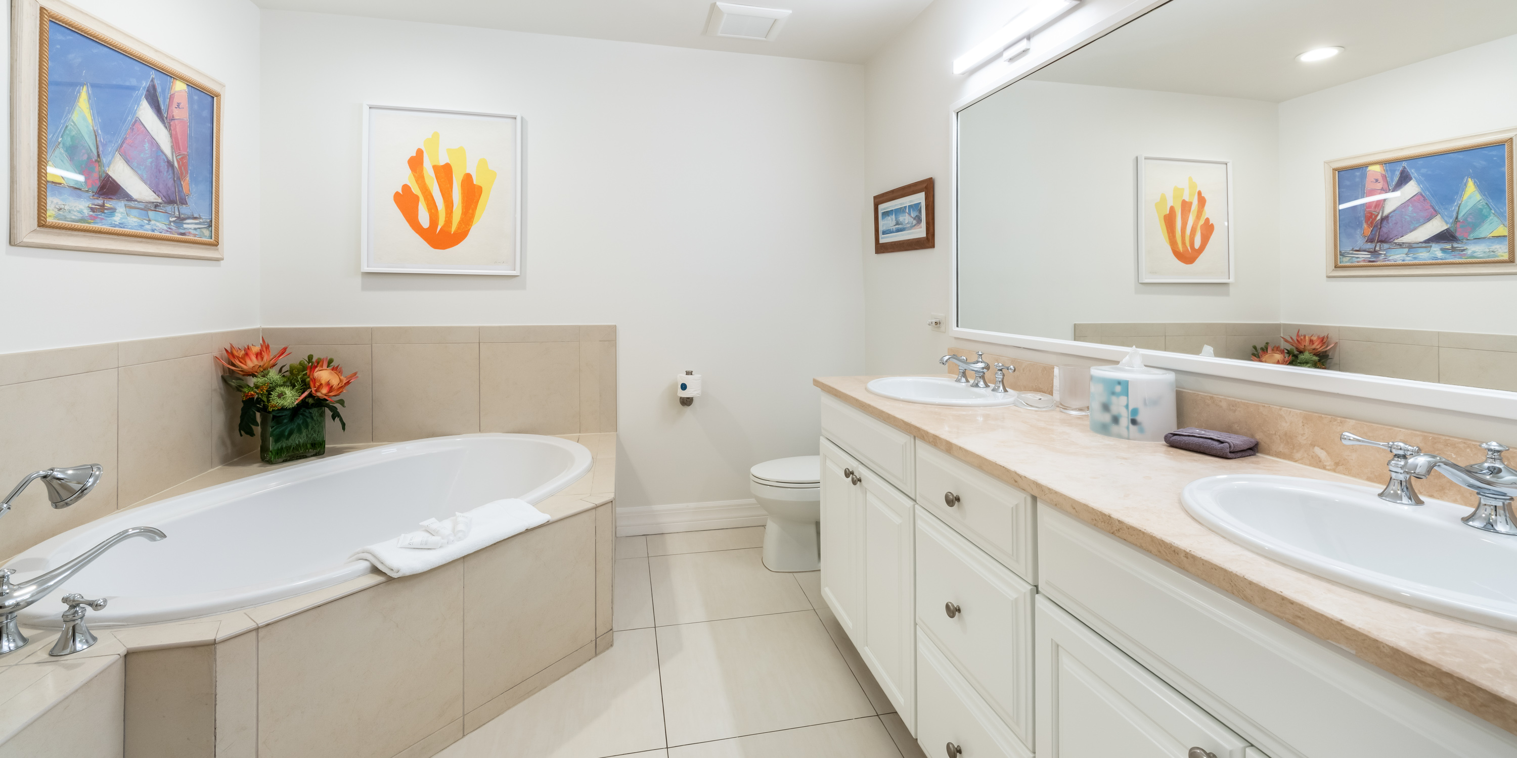 Central air conditioning, ceiling fans, and tiled floors keep this lovely villa cool and comfortable.